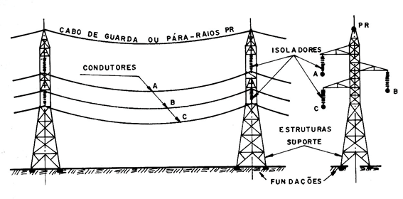 Resumidamente, uma linha aérea de transmissão de energia é composta por cabos condutores, isoladores e ferragens, estruturas suportes e cabos para-raios, conforme ilustrações contidas na Figura 1.
