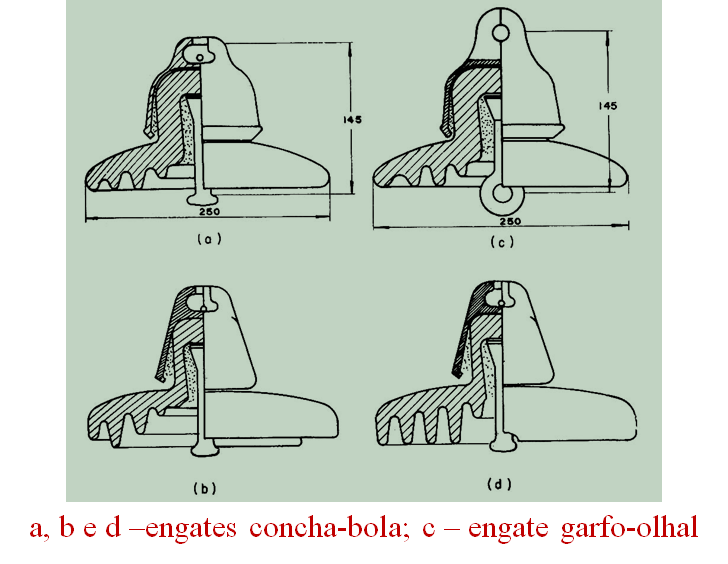 Esses isoladores passaram a ser construídos em geometrias diversificadas para atender diferentes necessidades de montagem e às agressividades ambientais reinantes. Na Figura 6 são ilustrados alguns tipos de geometria.