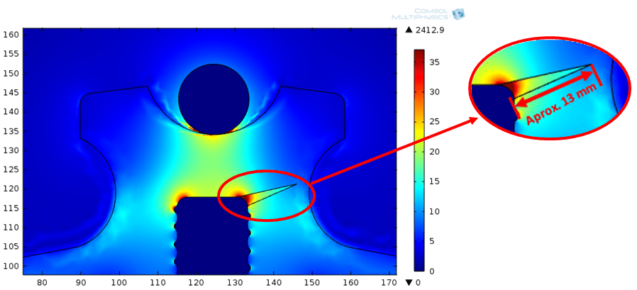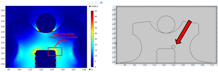 Uma outra possibilidade analisada foi a presença de uma fissura na região de maior campo elétrico, conforme ilustração contida na Figura 12 e análise gráfica apresentada na Figura 13.