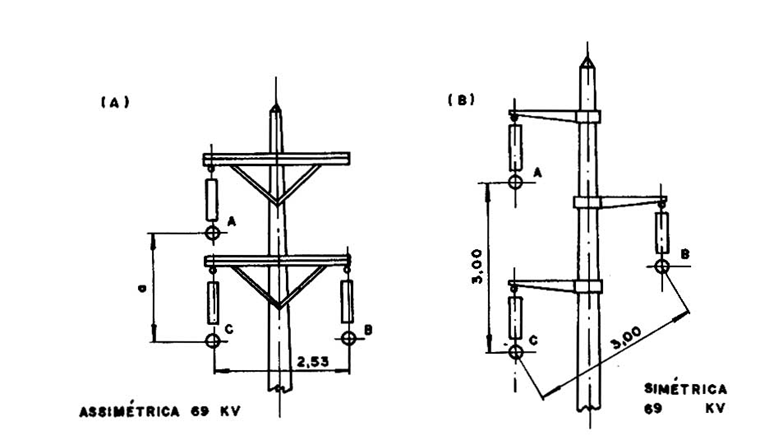 Quanto à disposição dos condutores, tradicionalmente são triangular, horizontal ou vertical. Algumas formas não tradicionais têm sido praticadas no sentido de aumentar a potência natural das linhas, seguindo a tendência de linhas de potência natural elevada (LPNE).