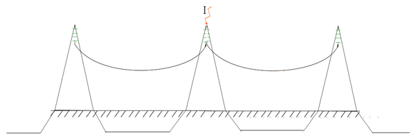 Será verificado, agora, se o uso de contrapesos contínuos trás alguma vantagem sobre o seu uso sem continuidade. Deseja-se verificar se interligar os contrapesos de torres vizinhas, como ilustrado na Figura 6, causa uma menor sobretensão.