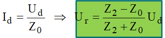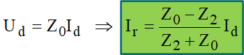onde Ud e Id representam as ondas de tensão e de corrente, respectivamente, que viajam no sentido direto (da esquerda para a direita), e Ur e Ir são as ondas de tensão e de corrente, respectivamente, que viajam no sentido reverso (da direita para a esquerda).