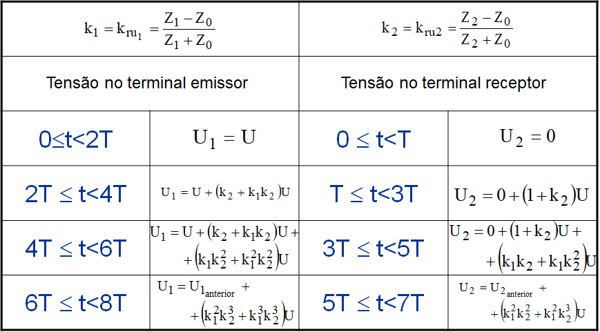 onde T representa o tempo para que a tensão no receptor, U2, venha ser submetida ao valor “U”.