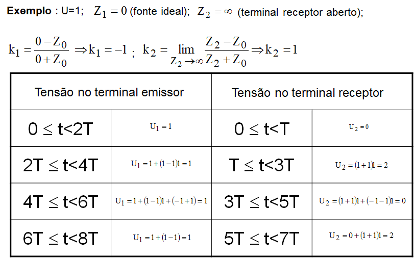 Dois casos particulares podem ser analisados: o terminal receptor encontra-se aberto, e, no segundo caso, o mesmo terminal encontra-se em curto-circuito.
