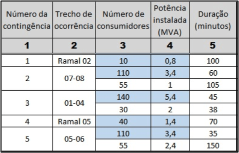 A título de exemplificação do cálculo dos indicadores técnico-gerenciais acima definidos, seja o sistema de distribuição da Figura 6, o qual, ao longo de um ano de operação, foi submetido às ocorrências registradas na Tabela 2 [5].