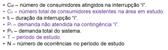 De uma forma geral, com o intuito de quantificar as grandezas que retratem os indicadores técnico-gerenciais de interesse, as seguintes variáveis podem ser definidas [5]: