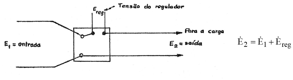 Como já mencionado, os reguladores de tensão adicionam em série com a tensão existente, em um determinado ponto da rede onde aplicado, uma tensão regulável. Na Figura 2, é ilustrada a ideia básica da ação do regulador de tensão sobre a rede, no ponto de aplicação.