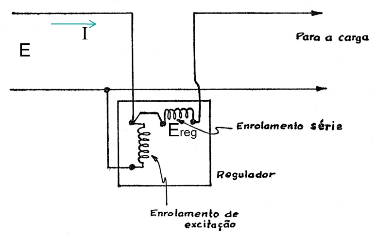 Todo regulador possui um enrolamento de excitação, ligado em paralelo com a linha, que produz a tensão série a adicionar na rede. A tensão é induzida no enrolamento série, cujo valor é variável com a carga, em estritos limites, através de um determinado comando. Na Figura 3 é ilustrado esse processo.