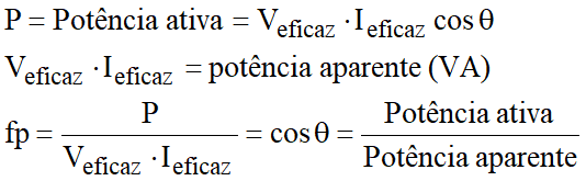 Uma característica importante na determinação da qualidade da energia elétrica fornecida a uma carga é a avaliação do seu fator de potência (fp). Revisando esse conceito, considere [4]: