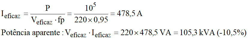 Seriam necessários 5,7 kW (4,64%) a mais de potência para suprir a carga de menor fp. As concessionárias de energia encorajam um fp superior a 0,95 e impõem penalidades a grandes usuários industriais que não a cumpram. Observar, também, que uma menor corrente na rede implica, ainda, numa menor queda de tensão.