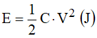 Quando os eletrodos de um capacitor são submetidos a uma tensão nos seus terminais, passa a circular no seu interior uma corrente de carga, o que faz com que uma determinada quantidade de energia se acumule no seu campo elétrico. A energia armazenada é expressa pela equação: