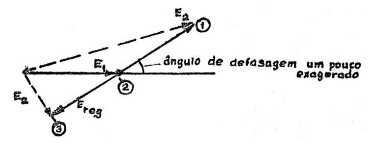 Com o deslocamento do comutador de derivação ao longo das mesmas, a tensão E2 de saída varia, conforme variação na tensão Ereg. Essa variação de E2 se dá em módulo, mas não em ângulo, pois estando o enrolamento série ligado em série com o enrolamento de excitação as tensões nos mesmos estão na mesma direção.
