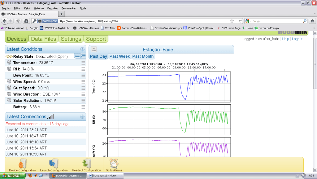 Na Figura 11, é apresentada tela retratando o acesso remoto dos dados da estação meteorológica, após instalação.