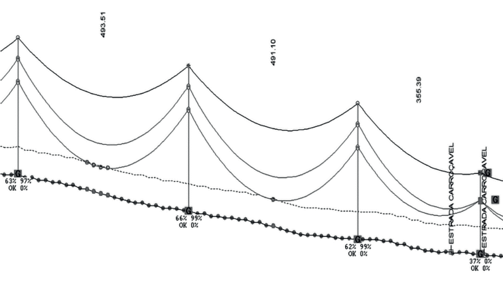 O PLS-CADD é um aplicativo computacional desenvolvido pela Power Line, em 1984, com o intuito de dar suporte às atividades de projeto e locação de linhas aéreas de transmissão de energia elétrica [2]. O processo de locação de estruturas em uma linha de transmissão (LT) representa um item fundamental em um projeto de uma LT. É nesta etapa que todos os aspectos de segurança, preconizados por norma, devem ser criteriosamente incorporados. Nas Figuras 10 e 11 são ilustradas simulações realizadas com esse aplicativo [3] [4].