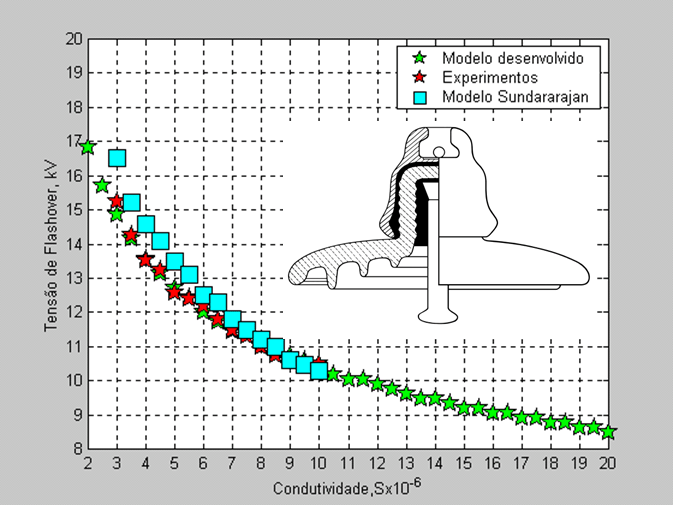 O MATLAB® é uma linguagem de computação técnica de alto nível, a qual incorpora ambiente interativo para desenvolvimento de algoritmos, visualização de dados, análises gráficas e computação numérica. Pode-se usar o MATLAB® em uma ampla gama de aplicações, incluindo processamento de sinais e imagens, comunicações, design de controle, teste e medição, modelagem e análise financeira [14]. Na Figura 15 é ilustrada a aplicação do MATLAB® para avaliação da suportabilidade de isolador padrão em ambiente poluído [15] [16].