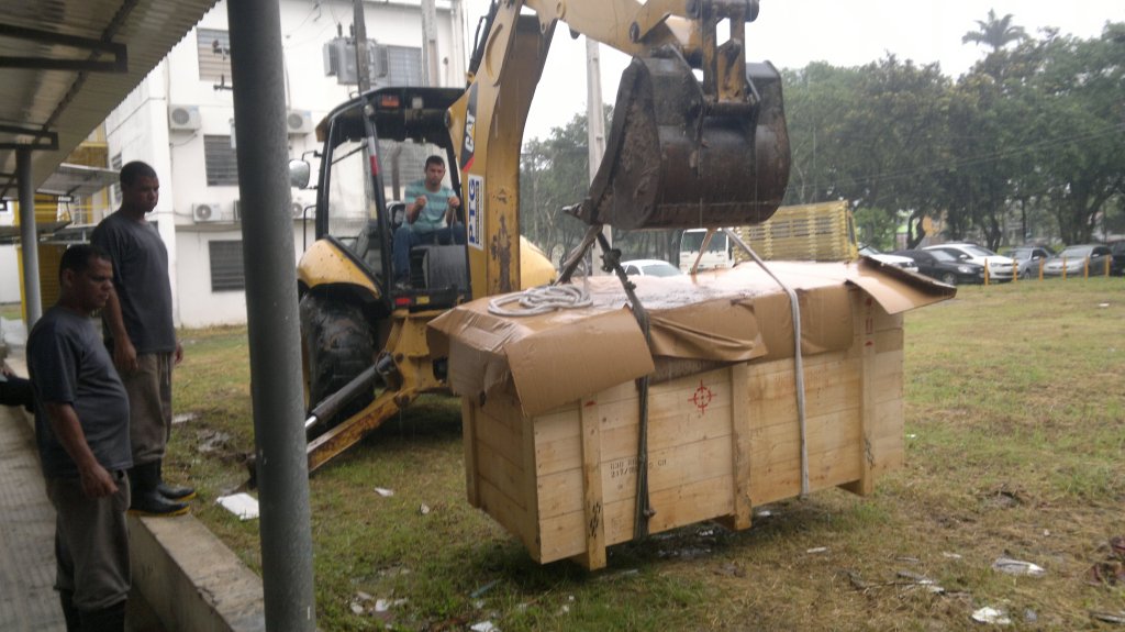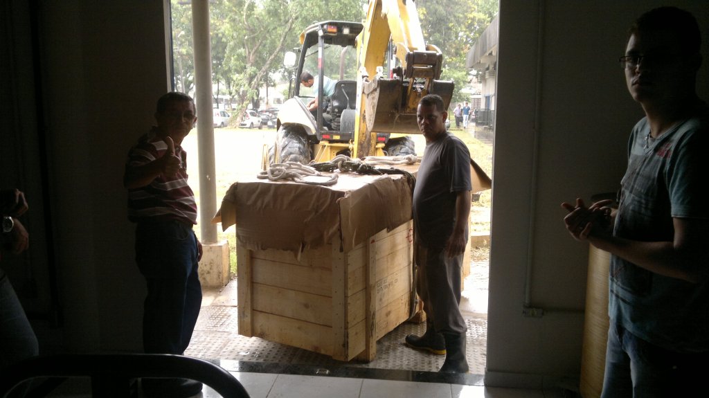 Nas Figuras 7 a 12, são registradas as etapas de chegada dos equipamentos e montagem final do LAT.