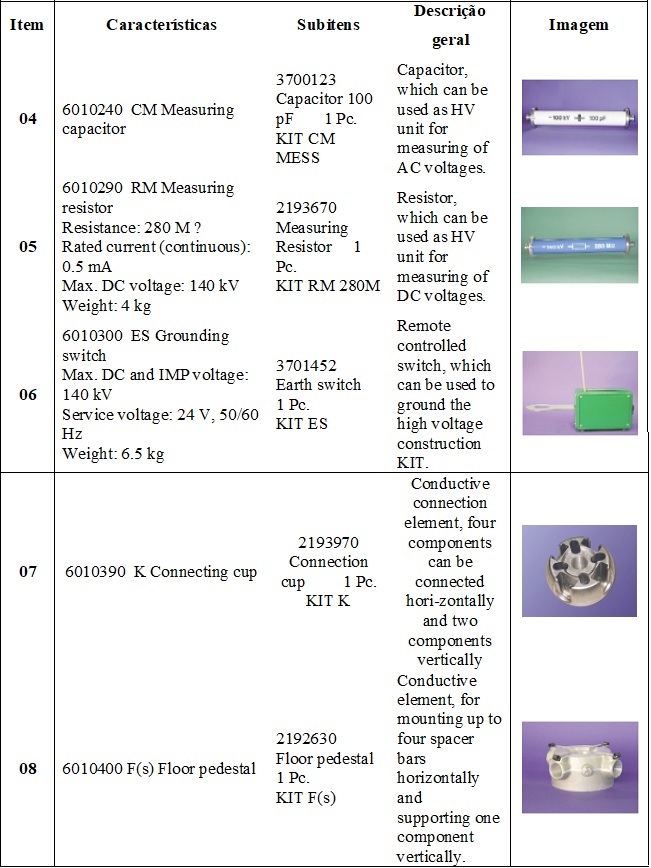 Uma constatação bastante significativa foi o fato de que, na Universidade, o laboratório recém construído, após incêndio que destruiu o laboratório anterior, só continha kits de pequeno porte. A explicação dada pela Coordenadora, Profa. Shesha Jaiaran, foi de que na maciça maioria das vezes são realizados experimentos em partes da instalação: um isolador, por exemplo, quase nunca na cadeia inteira. Quando da necessidade de ensaios em tensões maiores, são contratados outros laboratórios. Esse foi um balizamento substancial para a construção do LAT/UFPE.