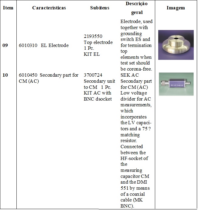 - ensaios de disrupção dielétrica; e